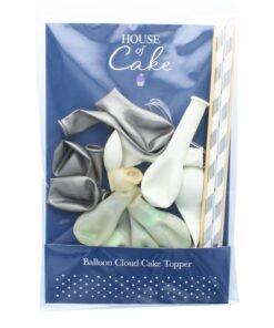 This balloon cloud cake topper is a fantastic addition to any cake! Simply inflate and use the provided wire to string your balloons in place. Only insert wire through uninflated part of the balloon to avoid bursting the balloon. Once completed, attach wire to straws at each end and insert into your cake.