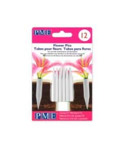 PME Flower Pics are the ideal holder for wired edible and non edible decorations.The perfect way to secure wired sugar flowers and wired cutout shapes into decorated celebration cakes, cupcakes and desserts. White plastic flower spikes, for use with fresh flowers, sprays with wired stems for safe insertion into cakes.