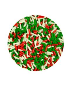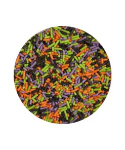 Hundreds and thousands are the classic sprinkle for all ages and are available in a huge range of colours and mixes including Rainbow, Halloween, with black, orange, and green, and purple, Patriotic Red White and Green, or a Multi-coloured mix of all the colours you can imagine.